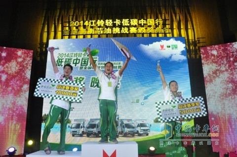 近日,2014江鈴輕卡低碳中國行總決賽落下帷幕,經(jīng)過近兩個月的角逐,最終,來自北京賽區(qū)的選手李占雷以每百公里消耗燃油6.59升的優(yōu)異成績獲得總決賽的冠軍。