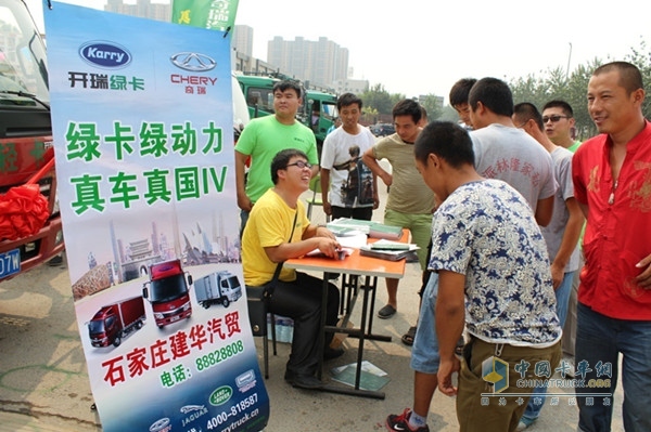 2014年8月26—31日,開瑞綠卡“綠卡綠動力,真車真國四”全國巡展首站石家莊站,奇瑞輕卡旗下全部國四車型悉數(shù)亮相。巡展現(xiàn)場累計吸引230多位輕卡用戶參與活動。
