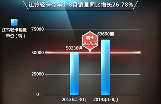 根據(jù)江鈴JMC品牌輕卡的最新銷量數(shù)據(jù)顯示,企業(yè)今年前八月累計(jì)銷量達(dá)63,690輛,同比增長(zhǎng)達(dá)26.78%。與國(guó)內(nèi)輕卡市場(chǎng)的微增態(tài)勢(shì)相比,受益于國(guó)四排放標(biāo)準(zhǔn)升級(jí),江鈴JMC品牌輕卡的增長(zhǎng)速度顯得更為迅猛,所占市場(chǎng)份額不斷提升。
