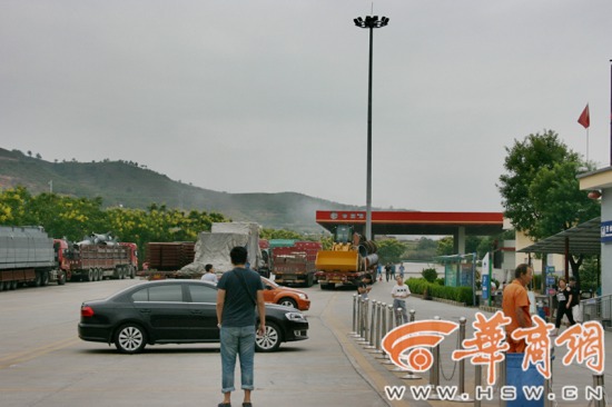 中午12時許,丹鳳服務(wù)區(qū)停留著許多車輛,司乘人員在此吃飯、休息,不少司機(jī)在為油箱內(nèi)無油而發(fā)愁。一位正在檢修車輛的長途司機(jī)介紹,他經(jīng)常跑滬陜高速,近來沿途已經(jīng)有好幾個服務(wù)區(qū)無法加油,他打算從丹鳳高速出口下去,到312國道附近加油,再返回滬陜高速。
